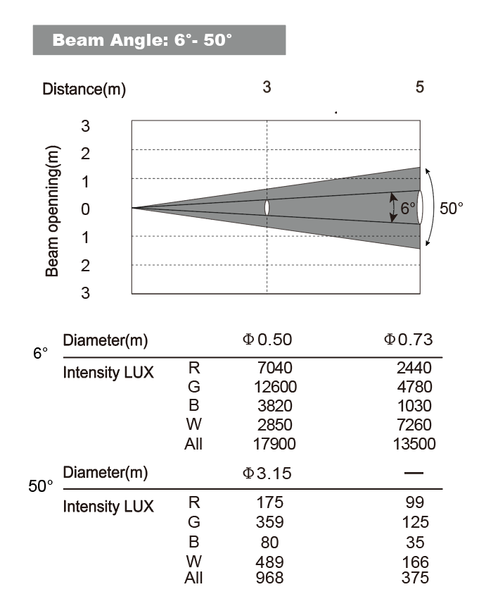 Flujo luminoso: (6°) 1'322 lm - (50°) 2'320lm@todas
