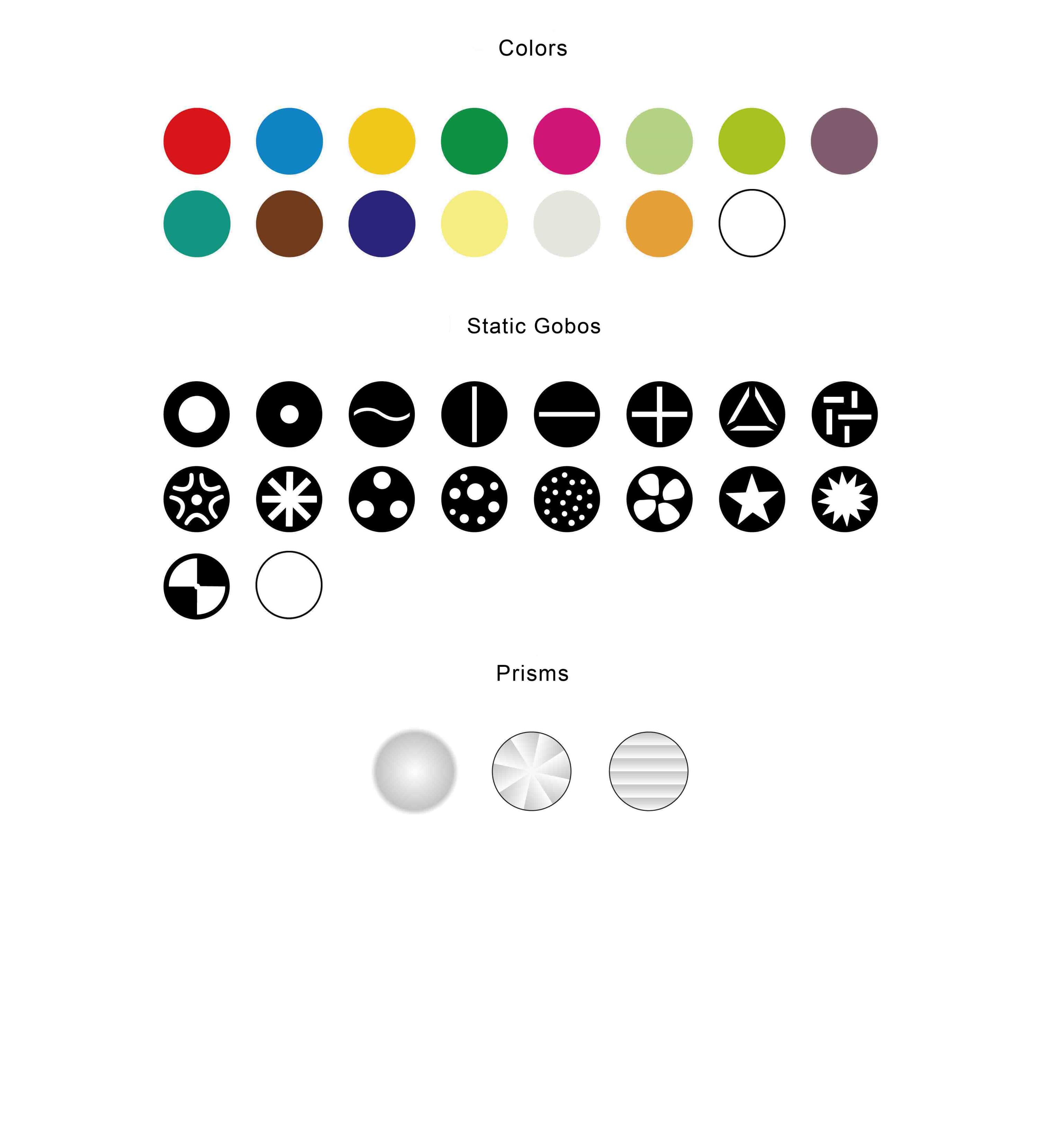 Rueda de gobos fijos: 17+1 gobos