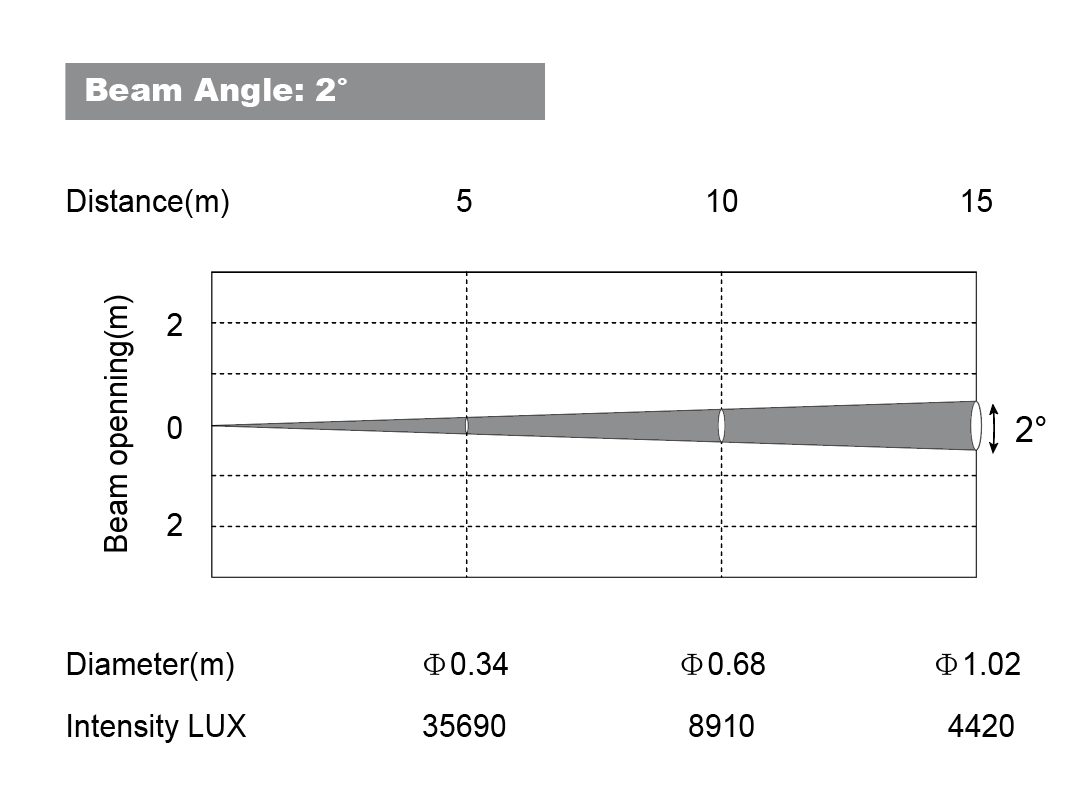 Flujo luminoso: 2679 lúmenes, 35690 lux a 5 m