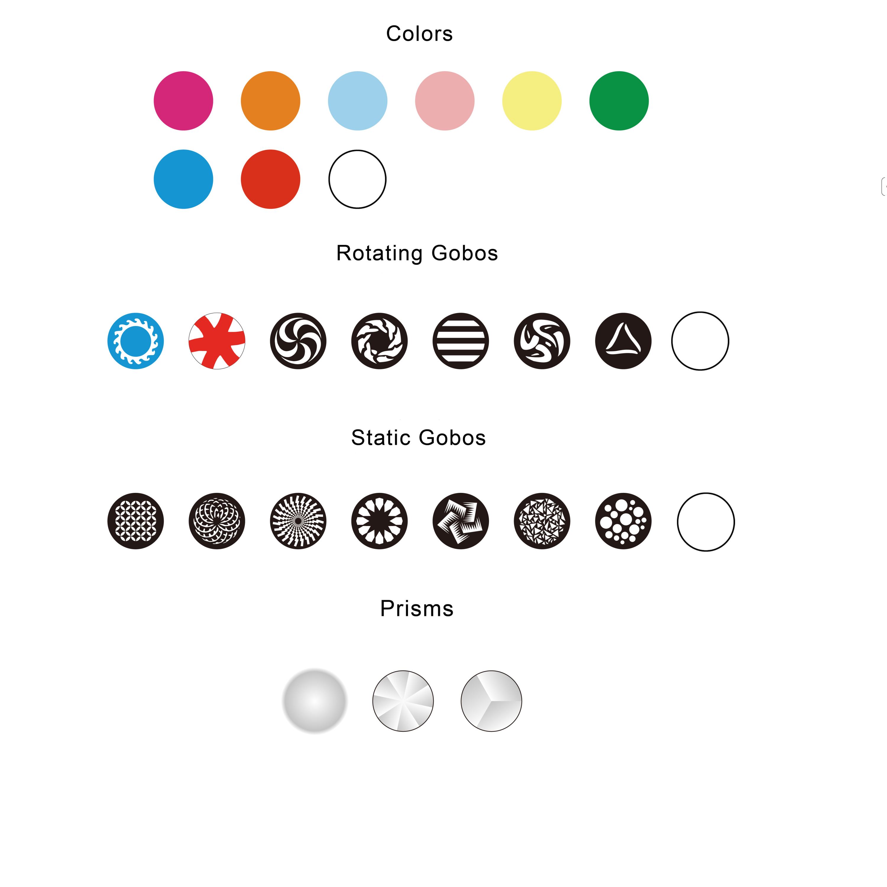 Rueda de gobos fija: 7+1 gobos