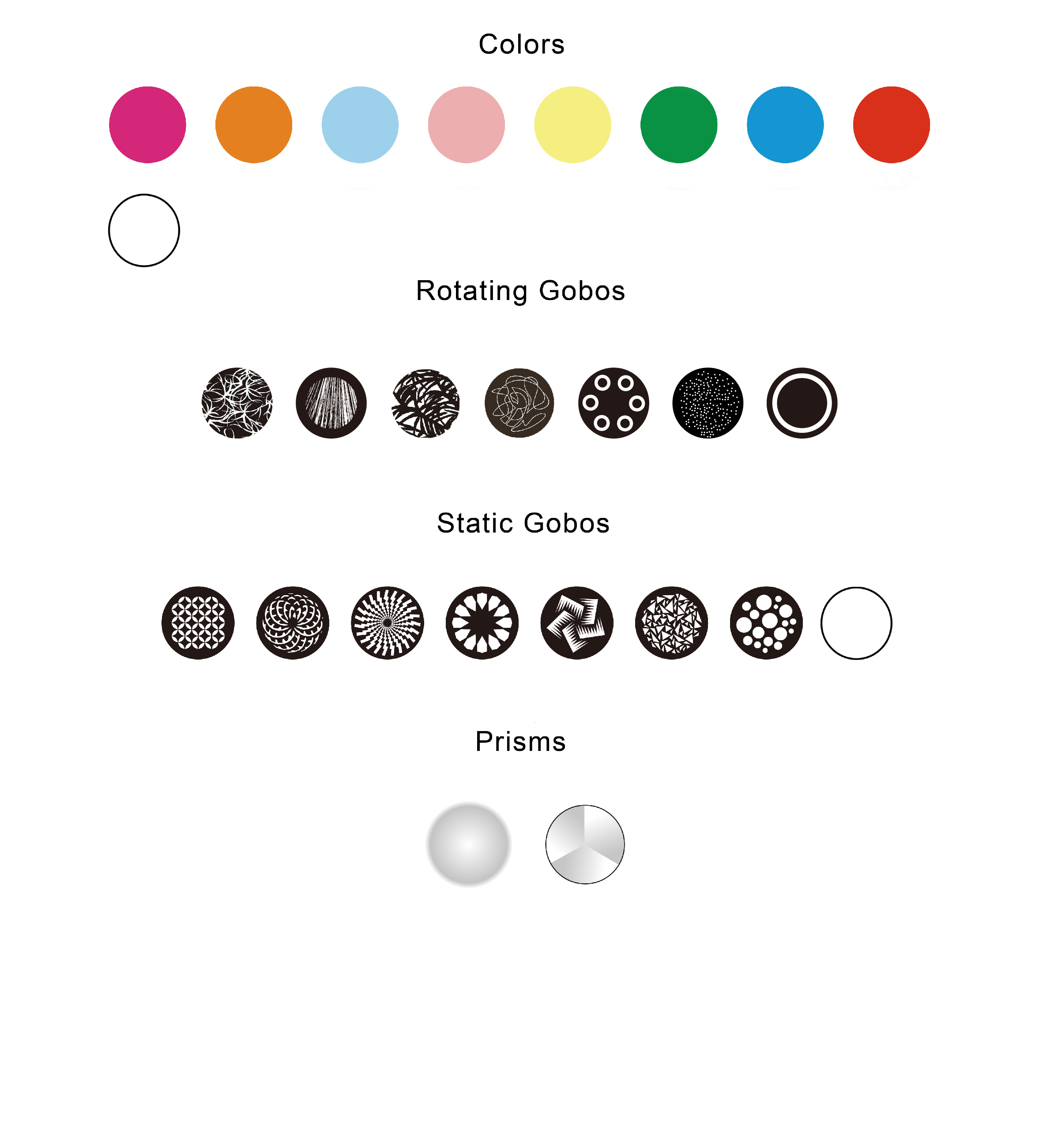 Rueda de gobos estáticos: 7+abiertos