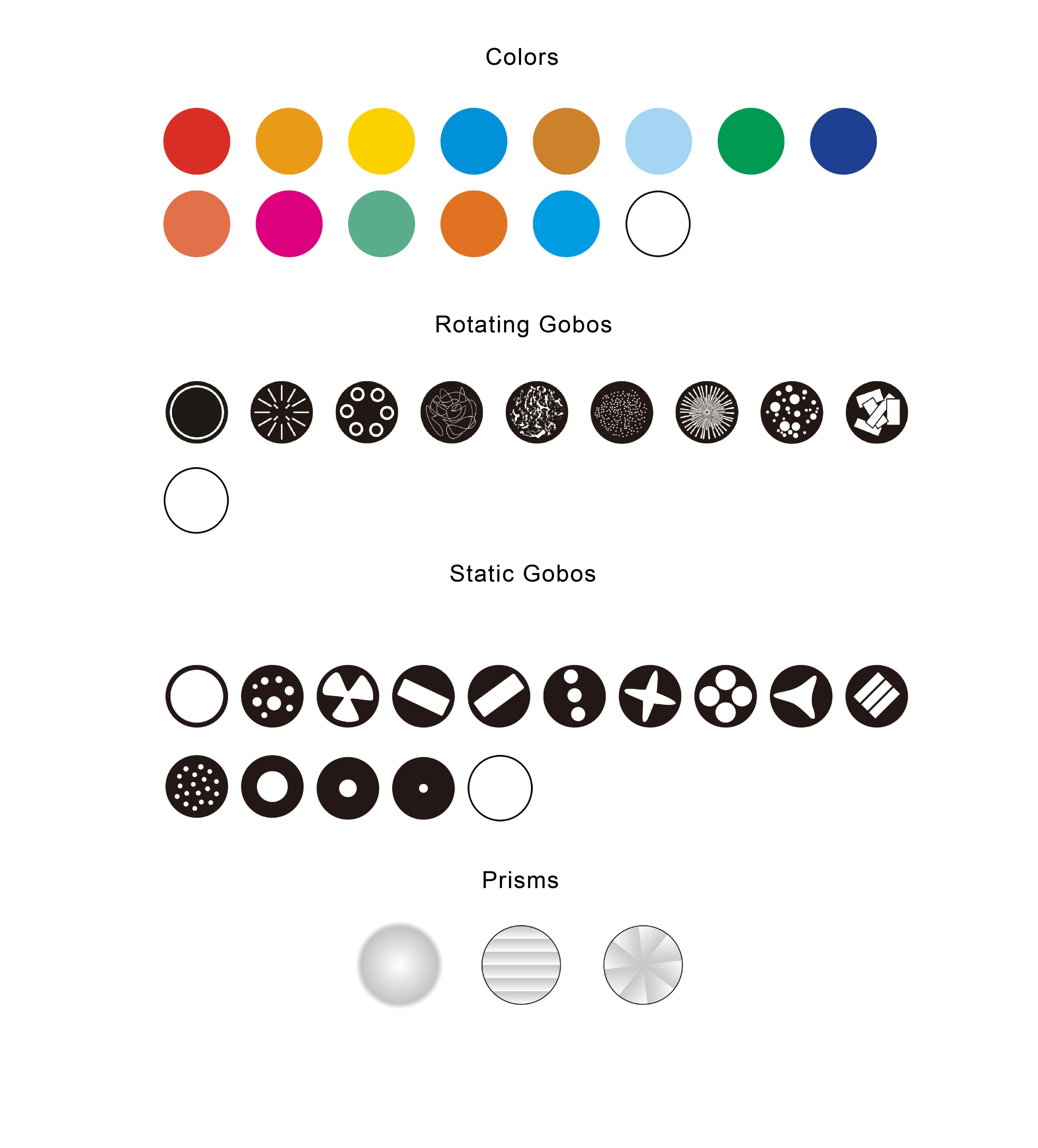 Rueda de gobos giratorios: 9 (galón)+abierto