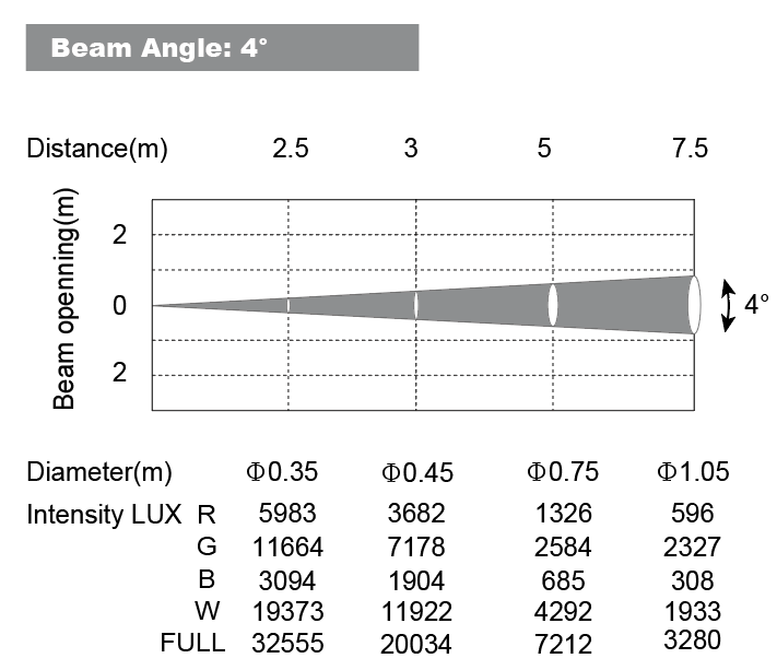 Flujo luminoso: 450 lúmenes, 32555lux@2.5m