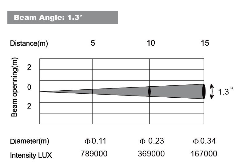 Flujo luminoso: 14936 lúmenes, 369000 lux a 10 m